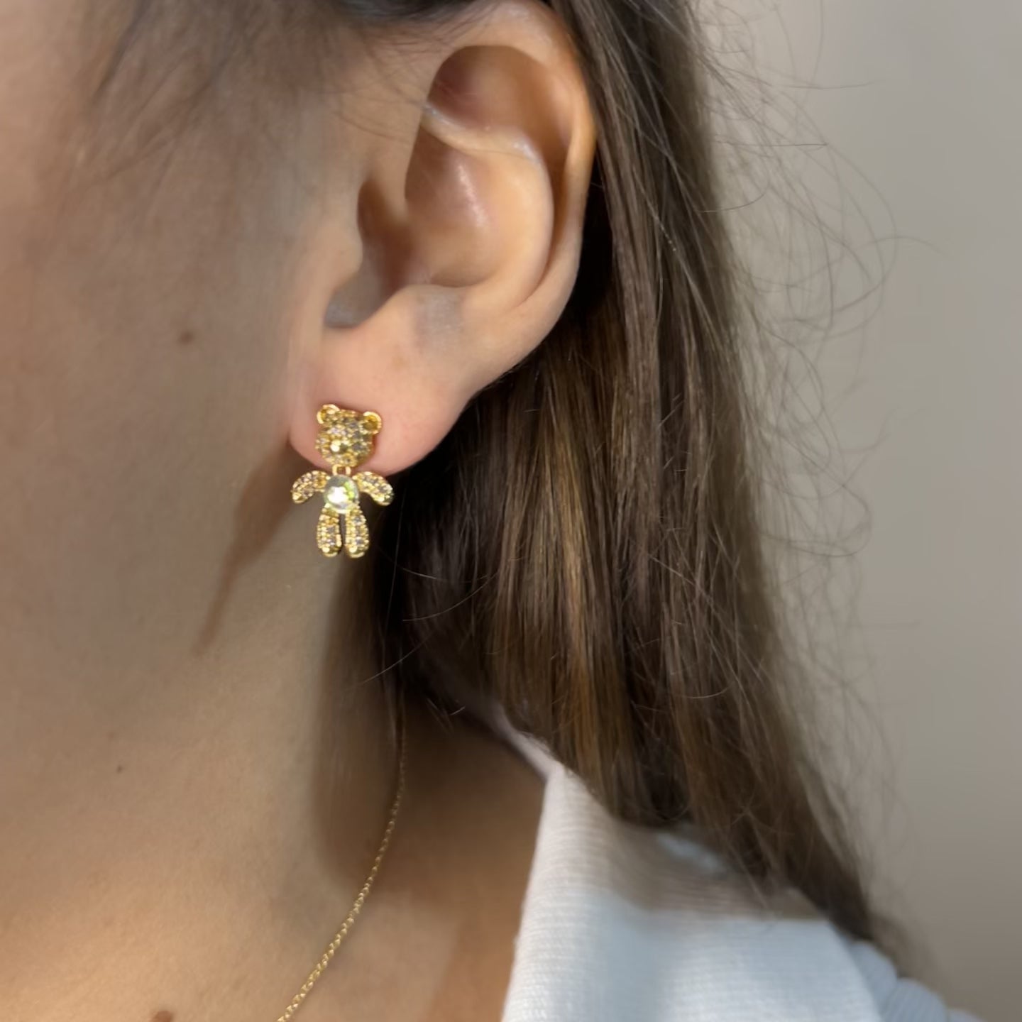 Collar de oso adornado con delicados detalles en pedrería. Este accesorio combina la ternura de un diseño encantador con el brillo sofisticado de cristales cuidadosamente colocados, creando una pieza versátil que complementa tanto looks casuales como especiales.